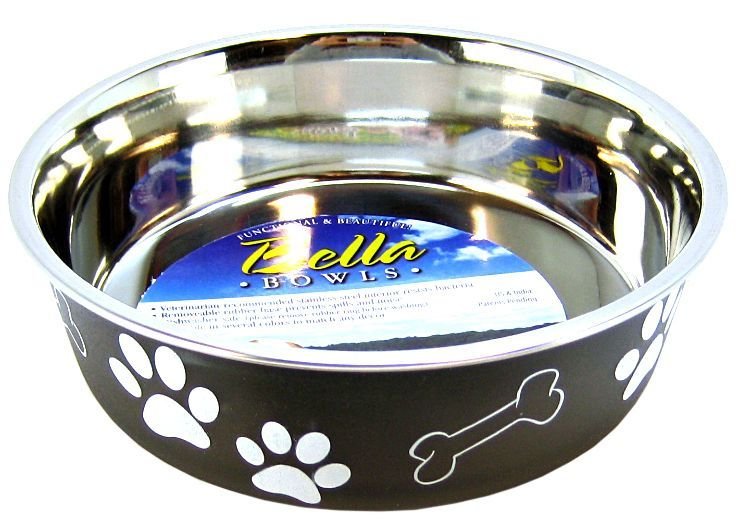 Loving Pets Stainless Steel & Espresso Dish with Rubber Base